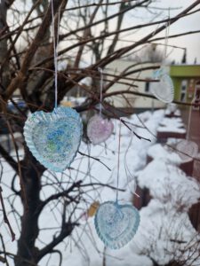 Mamy piękną zimową pogodę. Klasa 1c przy okazji prowadzenia obserwacji przyrodniczych wykonała lodowe serduszka, które ozdobiły szkolne drzewko. Była też dawka solidnego ruchu na ośnieżonej górce oraz na rozgrzewkę zimowa…
