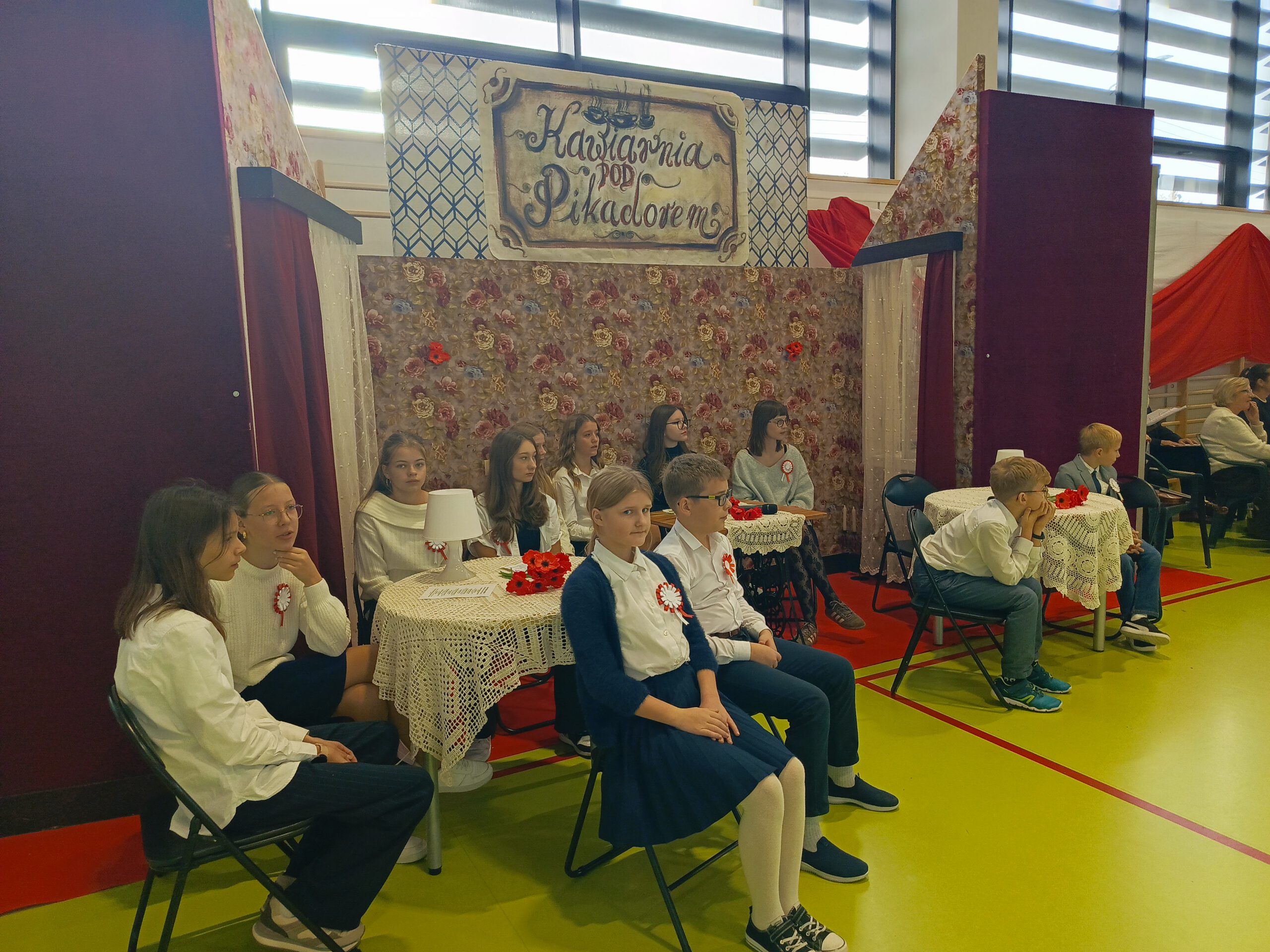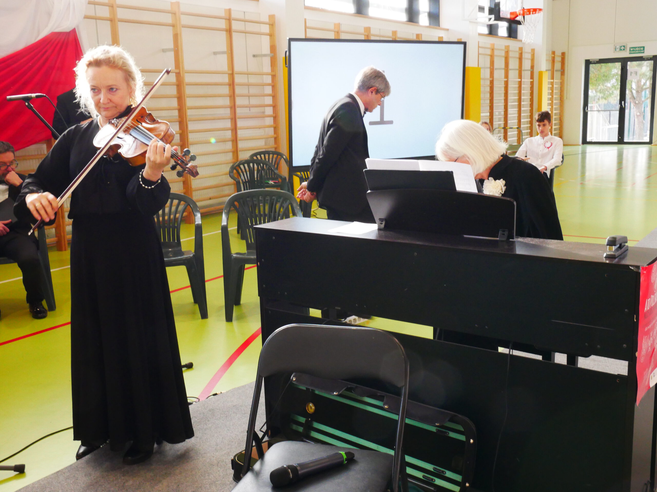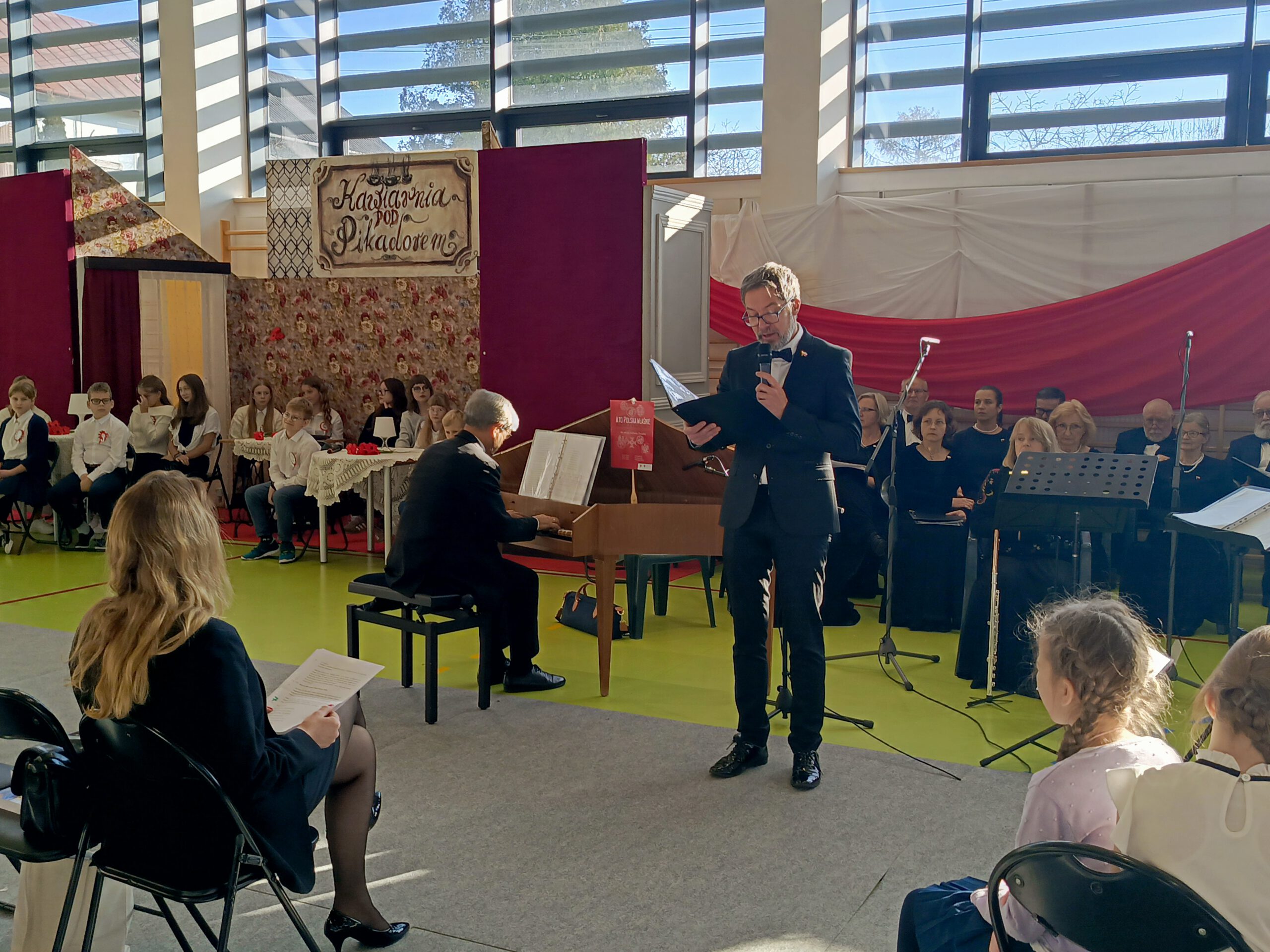 Z tej okazji, w naszej szkole, 7 listopada odbył się uroczysty apel, który był dla wszystkich uczniów wspaniałą lekcją historii i patriotyzmu. Scenariusz od strony poetyckiej i narracyjnej przygotowała Pani Elżbieta Tomczak, a koncepcję muzyczną Pan Witold Błaszczyk i Komorowskie Towarzystwo Śpiewacze. Piękną dekorację wykonała pani Wioletta Mroczek oraz Pani Sylwia Tłoczkowska. Uczniowie recytowali wiersze Adama Asnyka, Ignacego Krasickiego, Juliusza Słowackiego, Leopolda Staffa oraz Konstantego Ildefonsa Gałczyńskiego. Program artystyczny odnosił się do trudnej historii naszego kraju – od początków polskiej państwowości, aż do czasów nam współczesnych. Uczniowie mogli usłyszeć Bogurodzicę, Rotę w wersji instrumentalnej, czy fragment koncertu Jankiela.