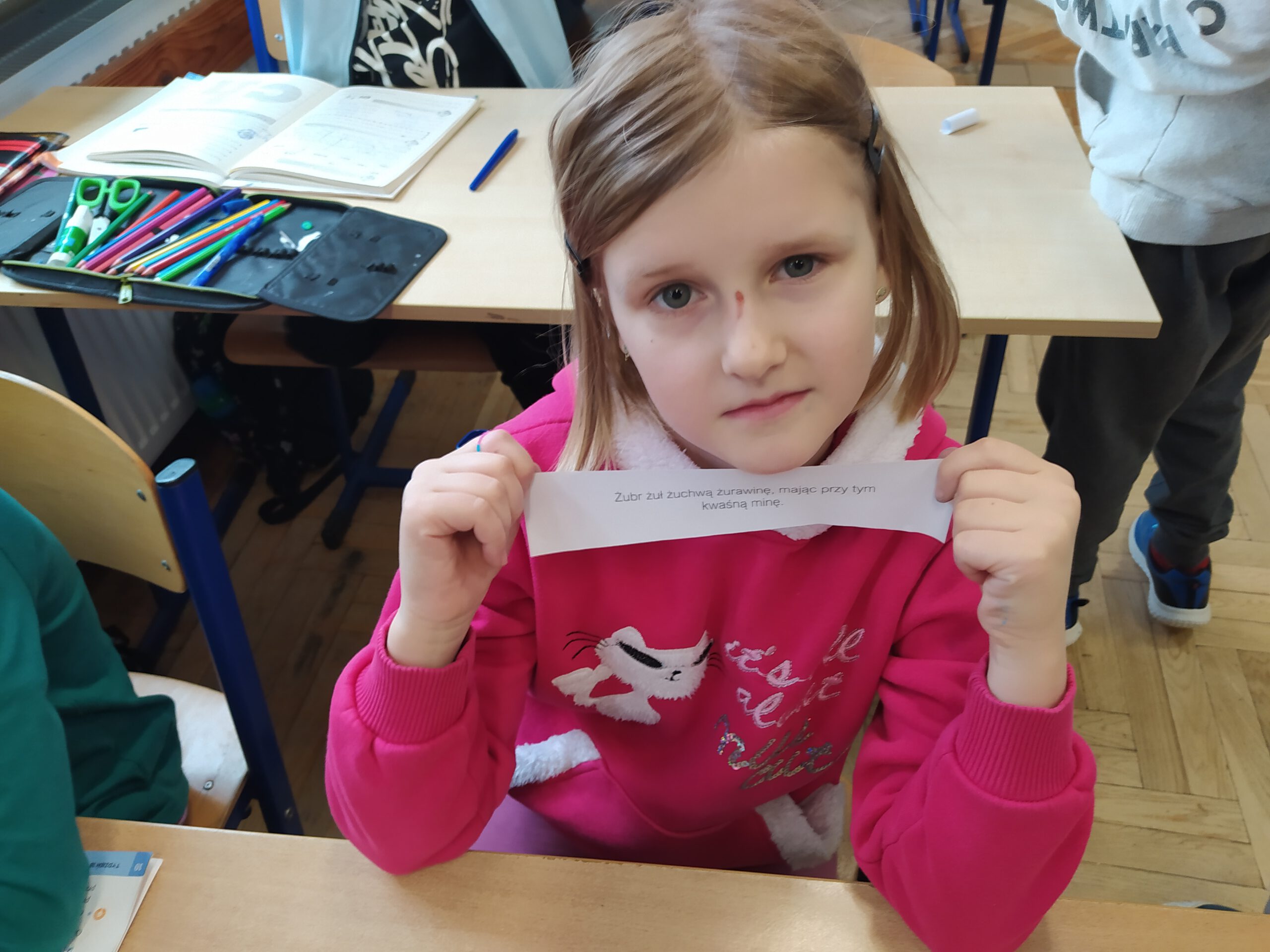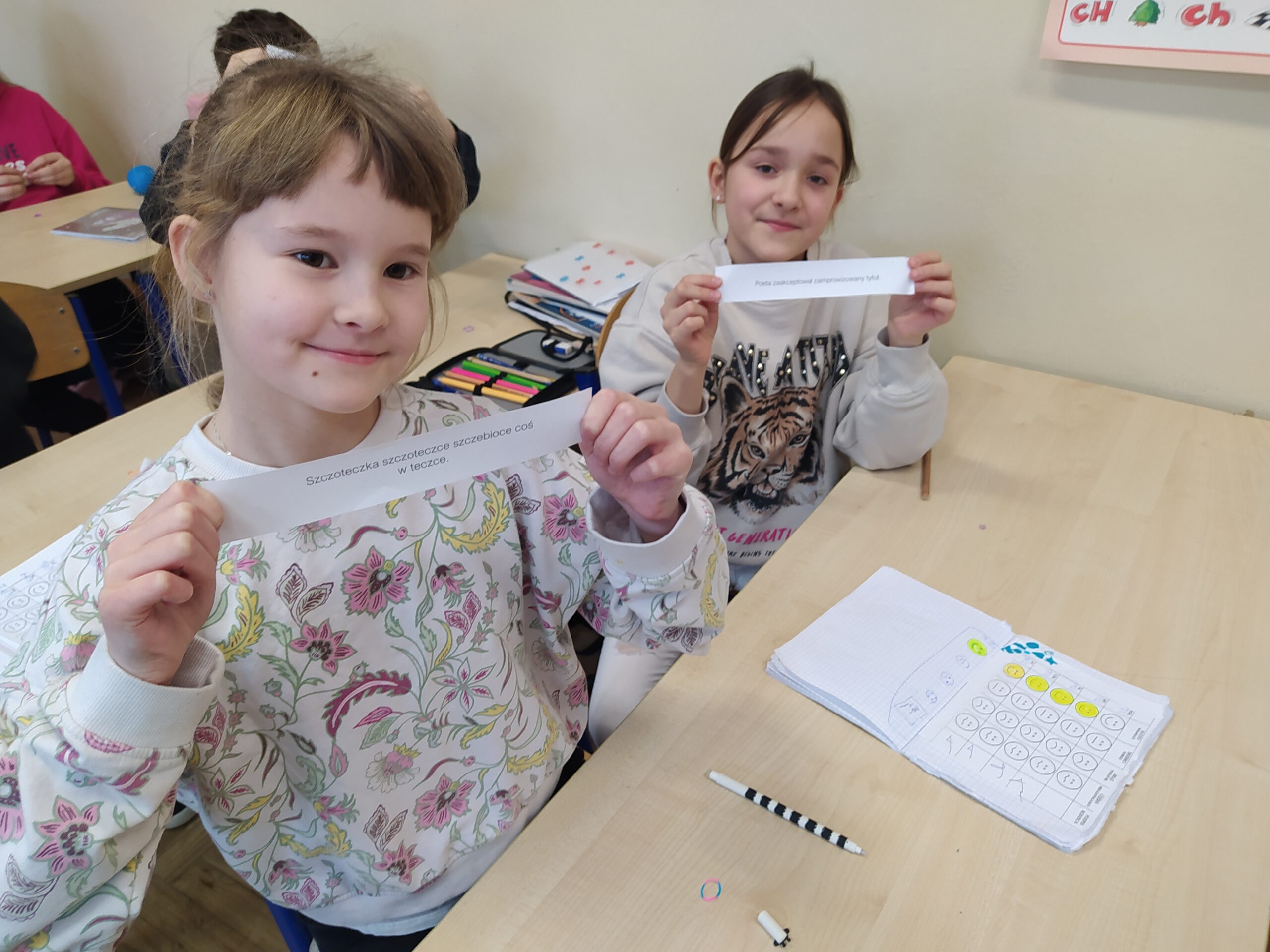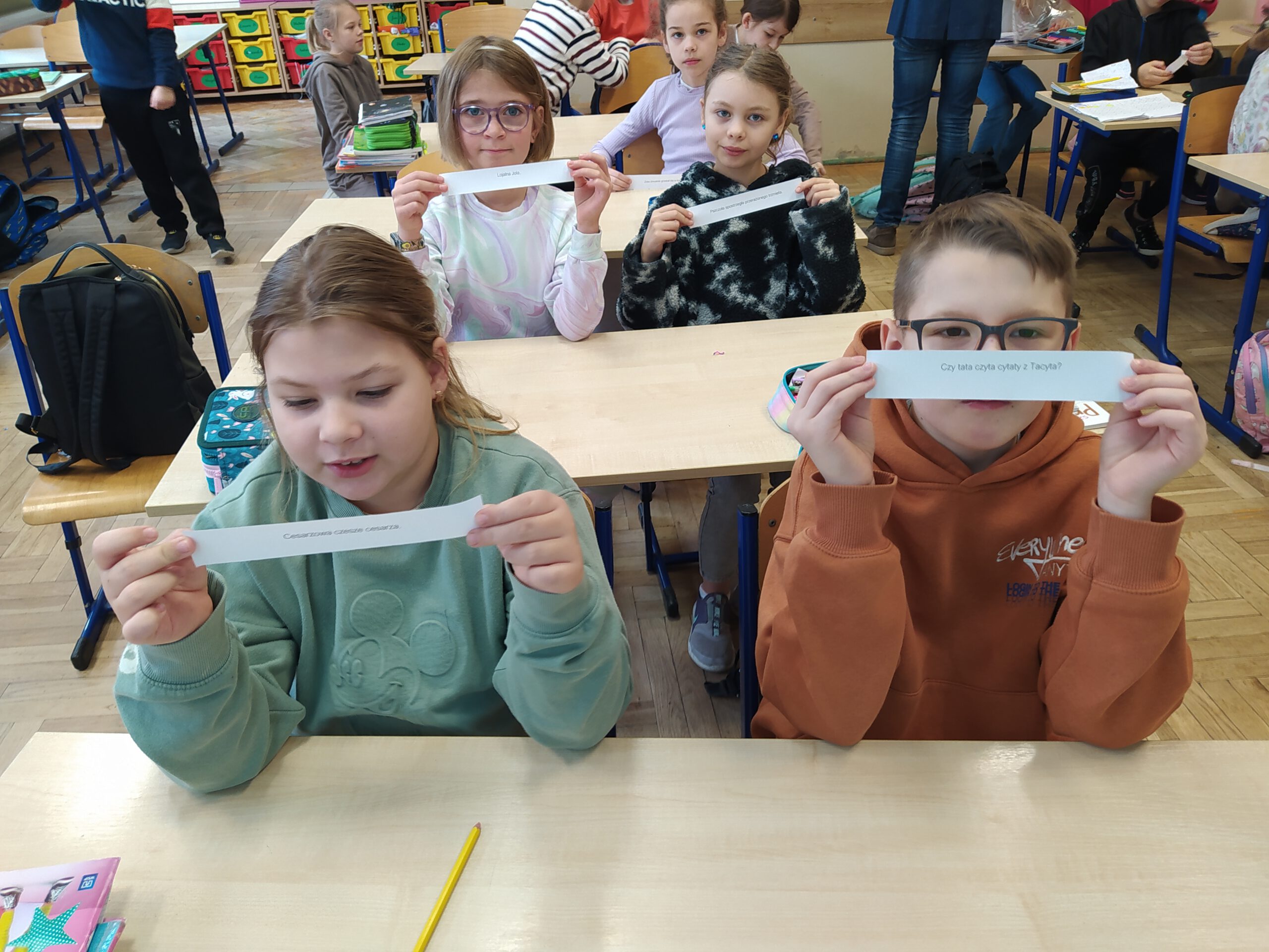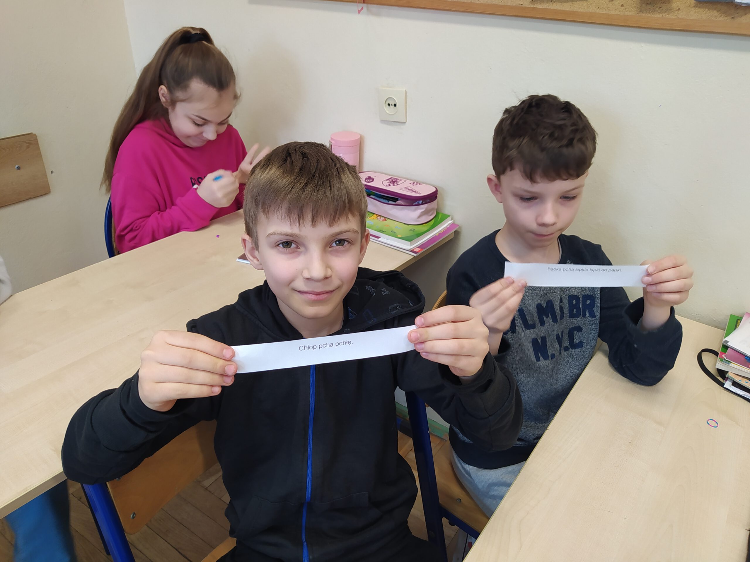 Uczniowie klas 2-3 gimnastykowali języki, bawiąc się słowami zaliczanymi do kategorii “łamańców językowych”.