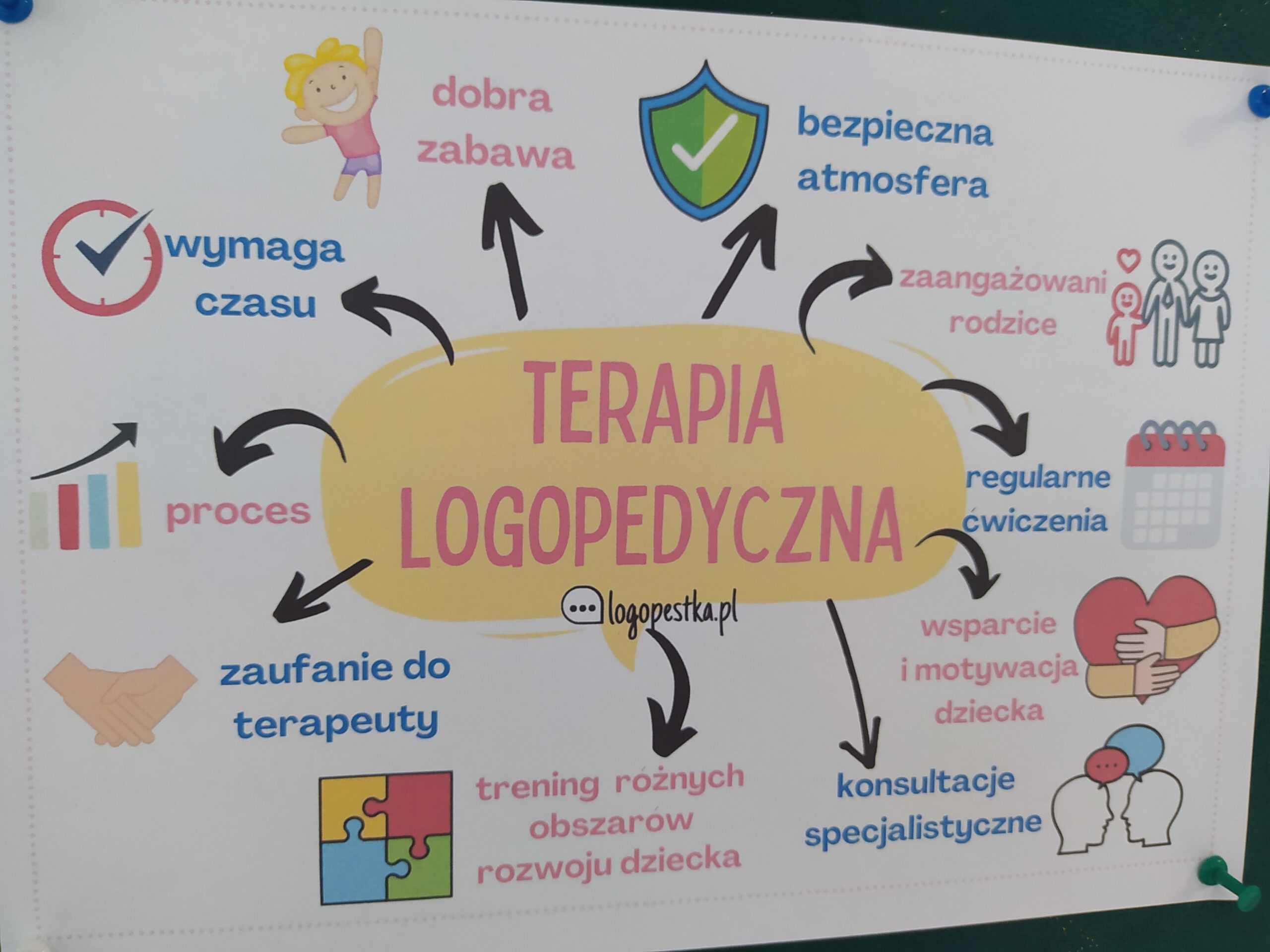 A pracę logopedy przybliżyła wszystkim gazetka na szkolnym korytarzu.