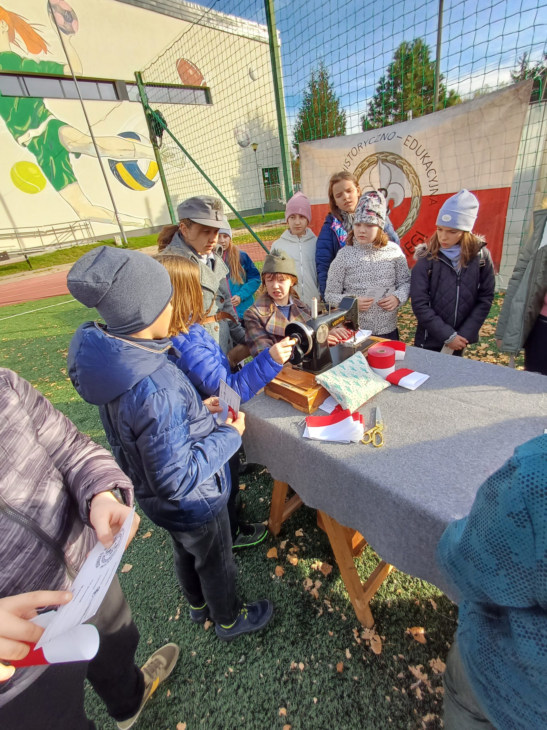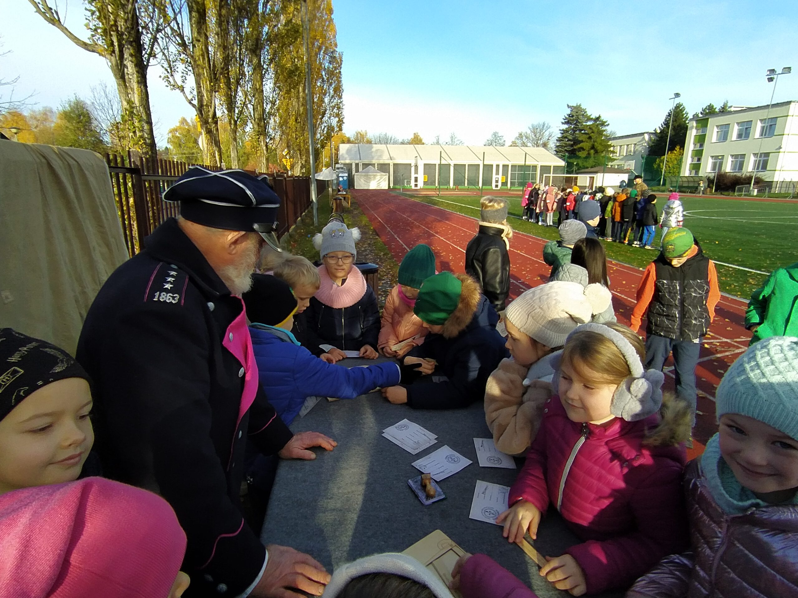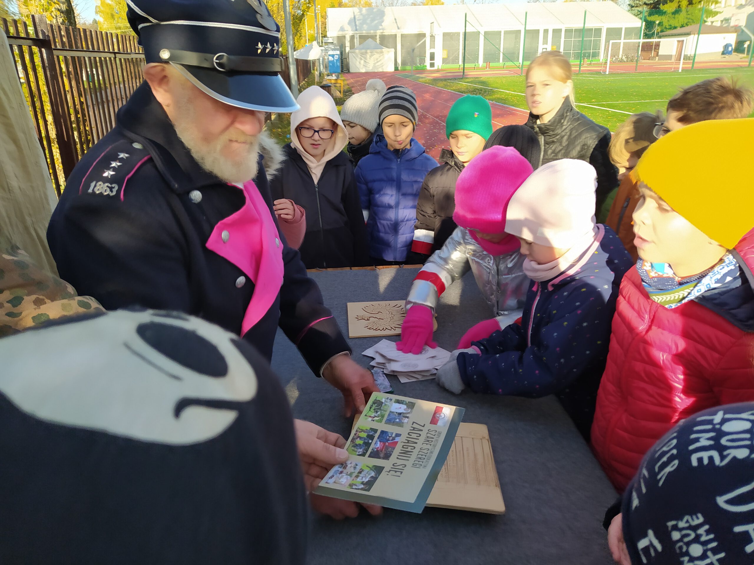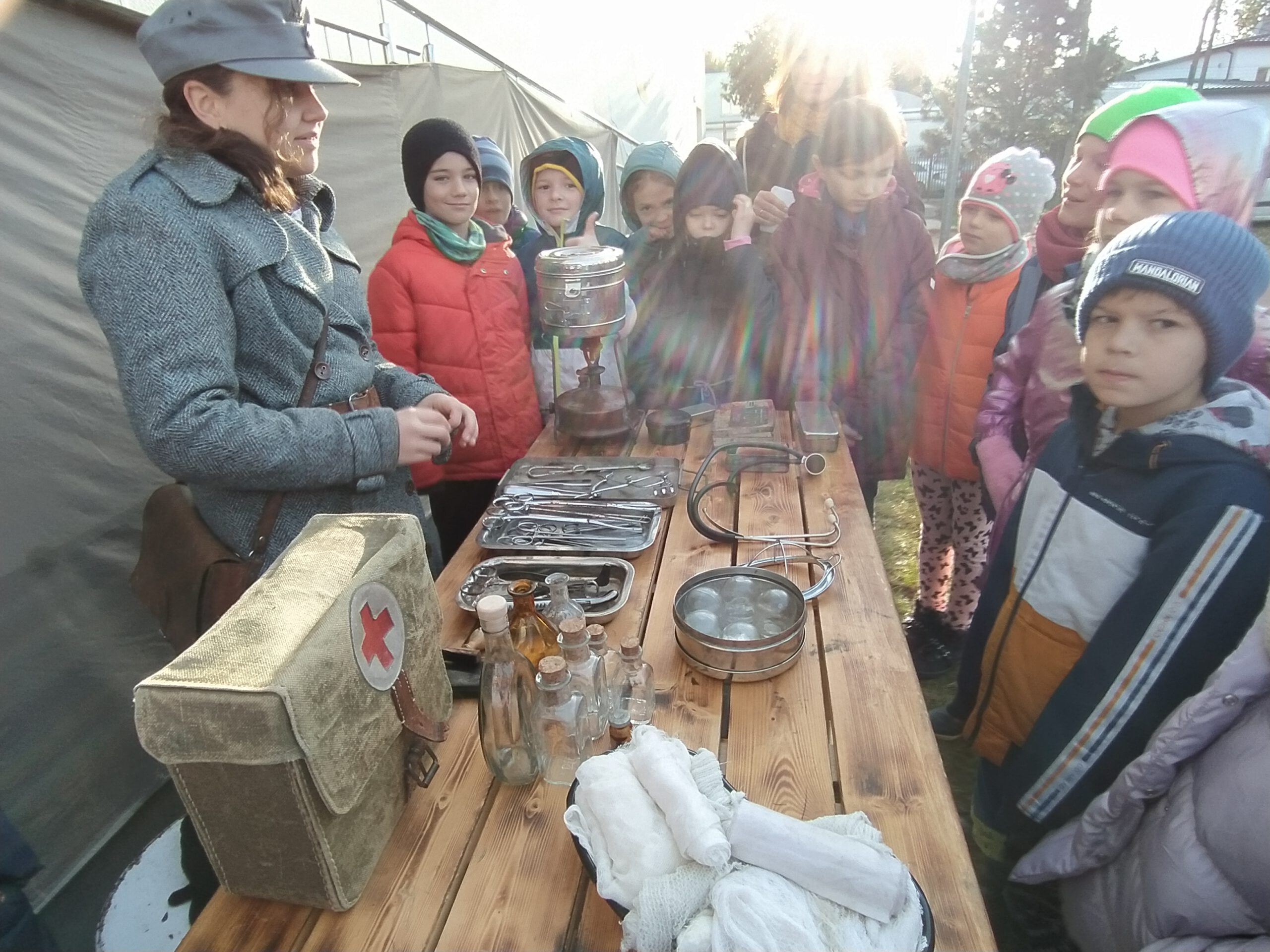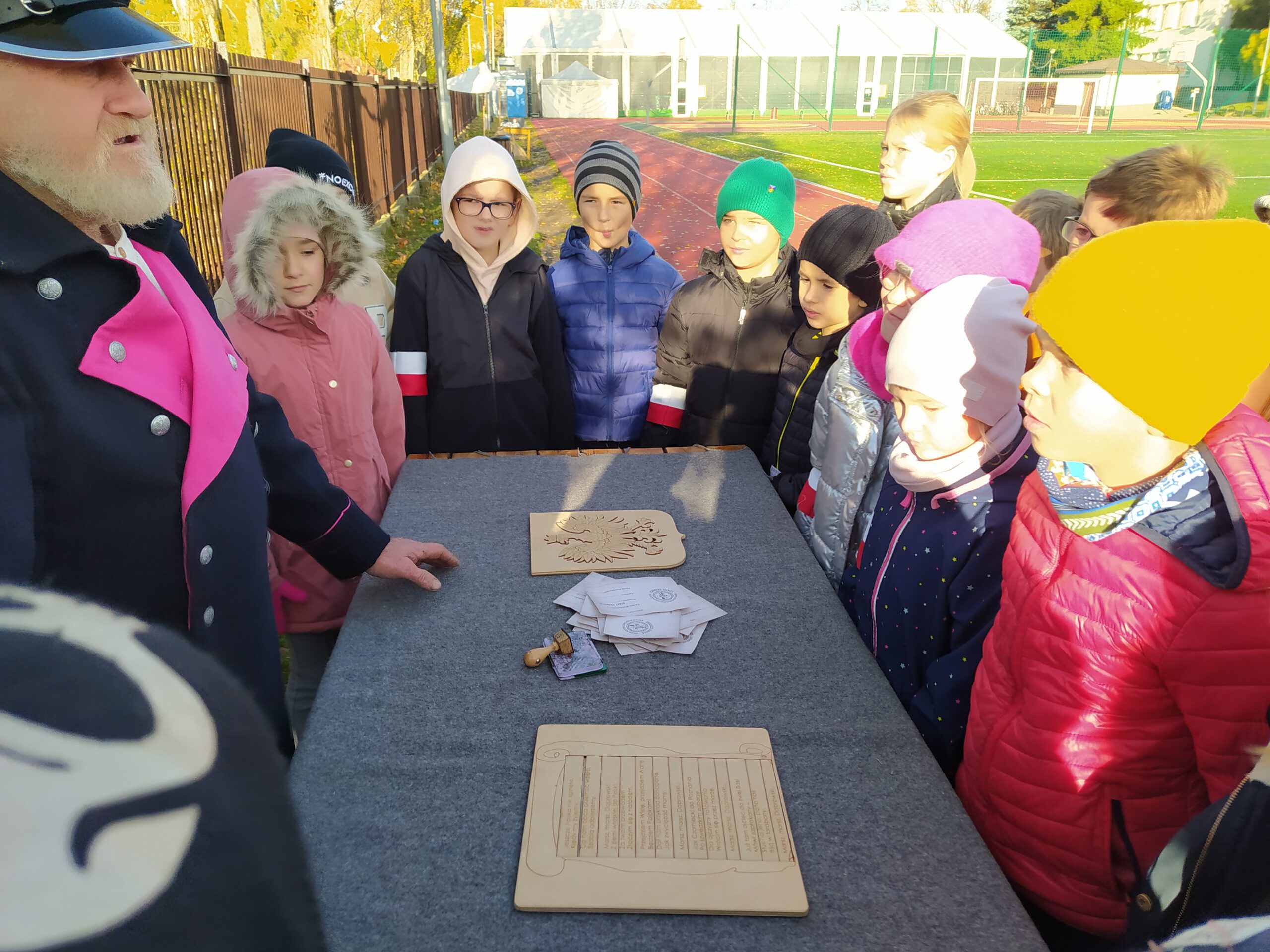 Podczas pikniku nasi uczniowie aktywnie uczestniczyli w wykonywaniu zadań na tematycznych stanowiskach historycznych: