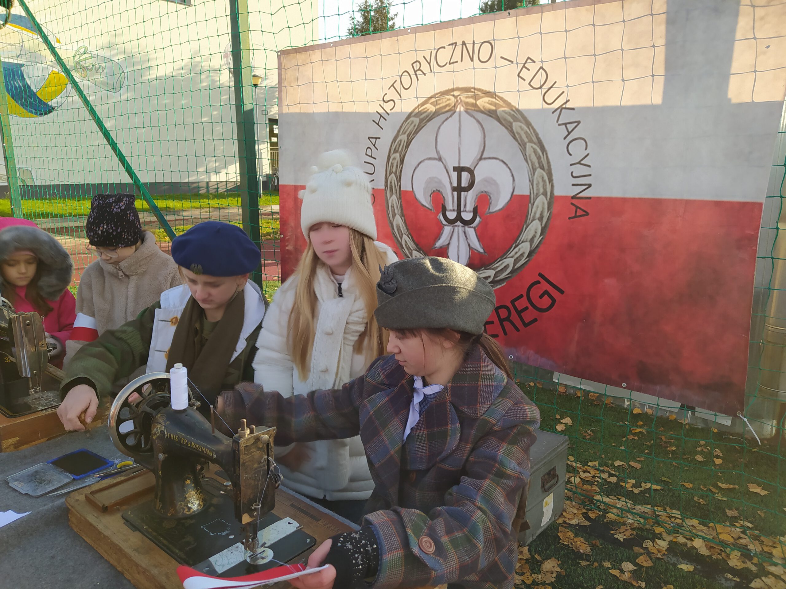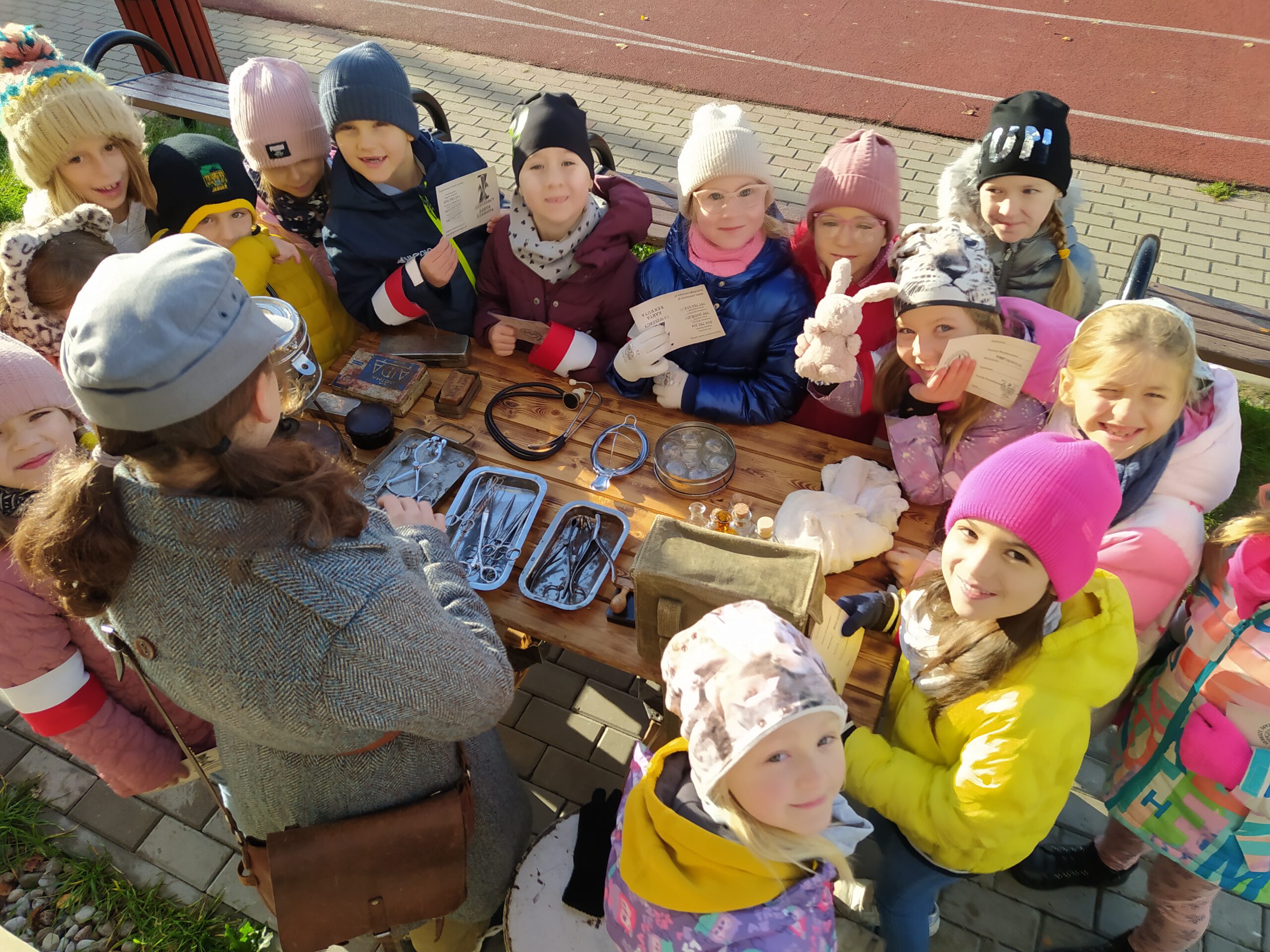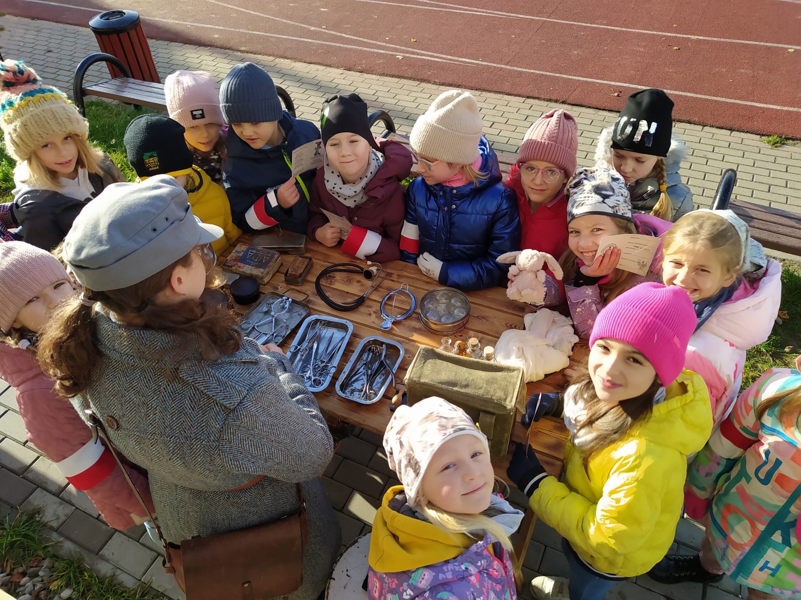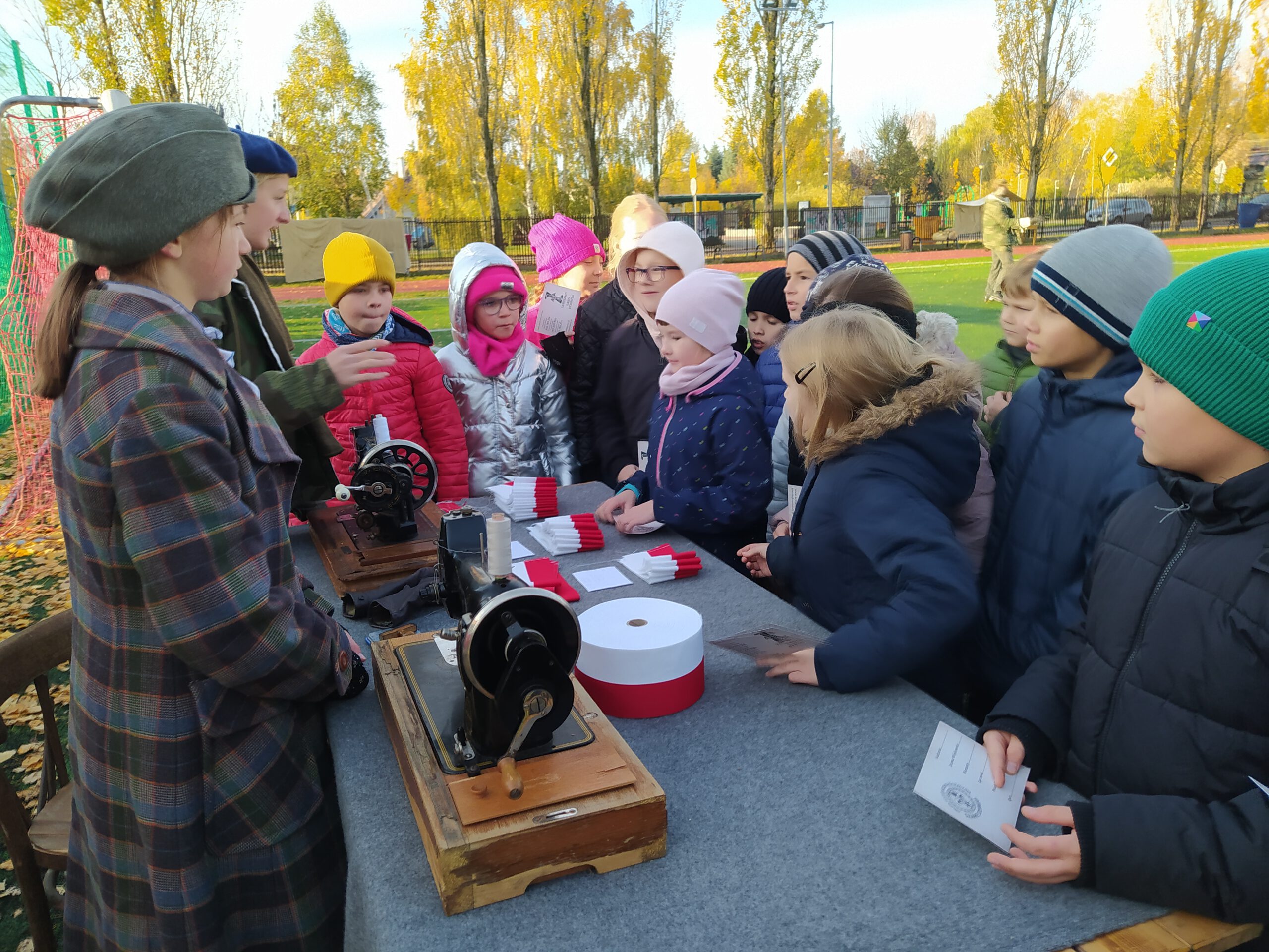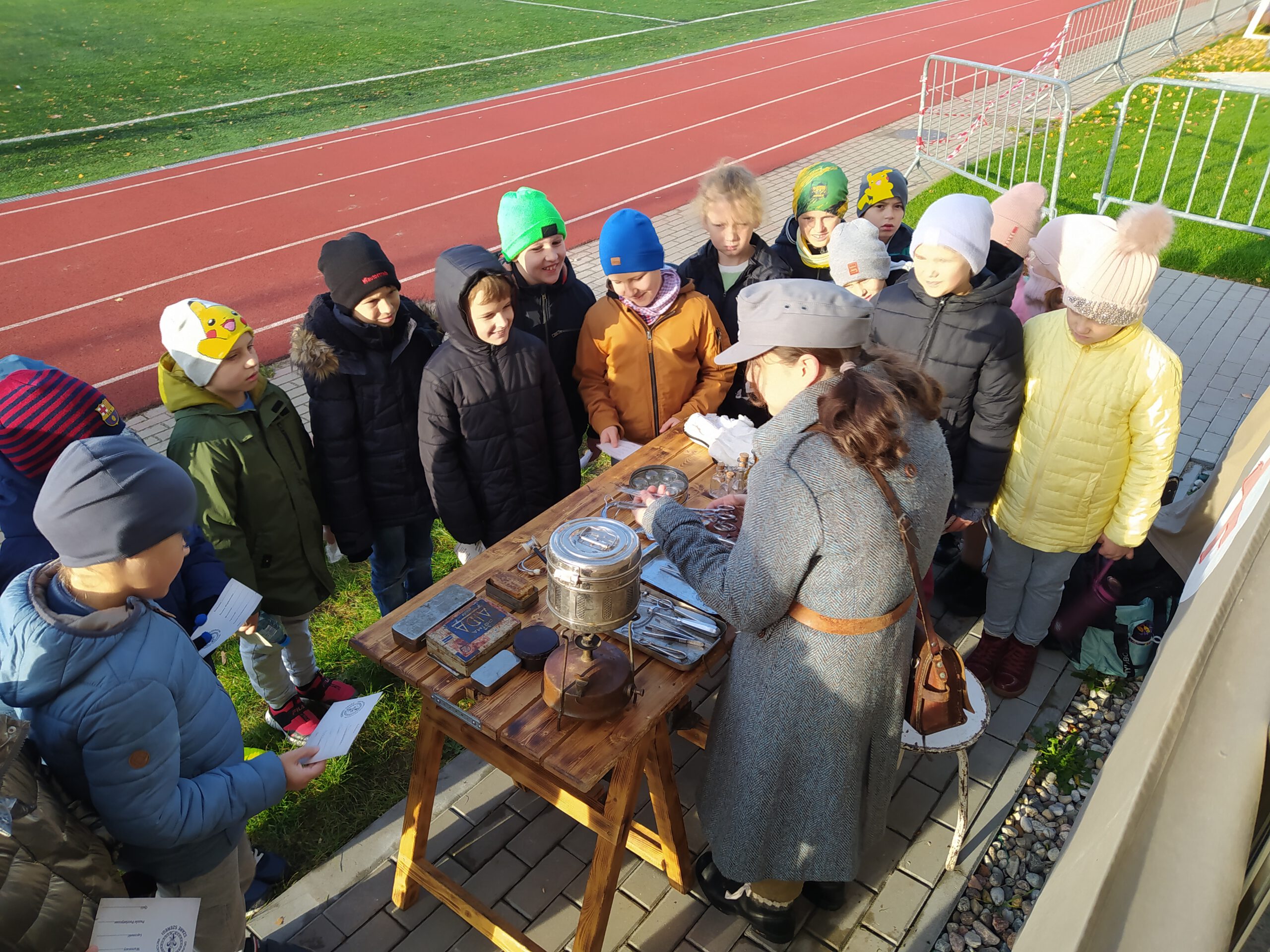 Podczas pikniku nasi uczniowie aktywnie uczestniczyli w wykonywaniu zadań na tematycznych stanowiskach historycznych: