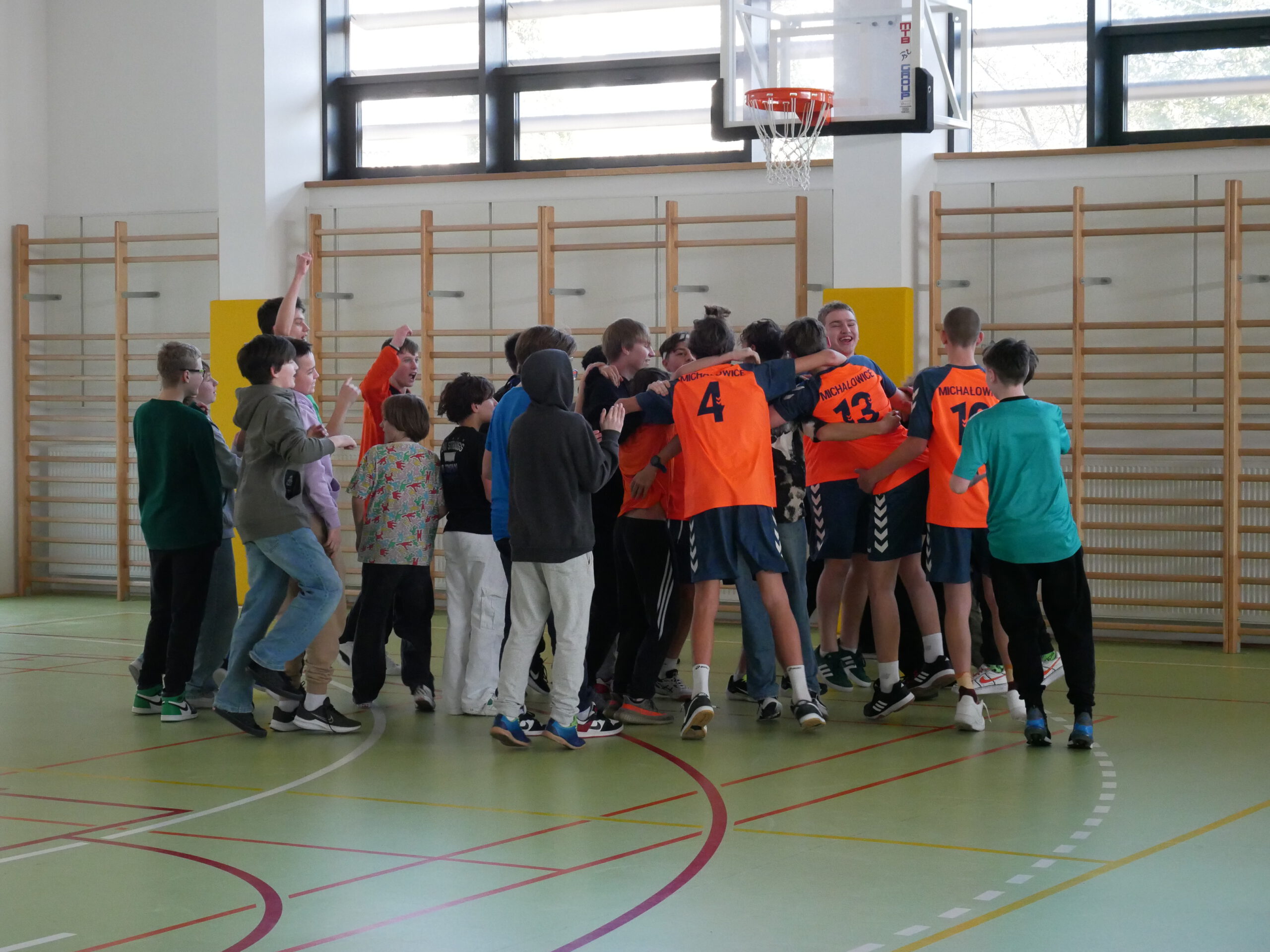 W fazie grupowej reprezentanci naszej szkoły wygrali z ekipami Podkowy Leśnej i Milanówka zajmując 1. miejsce w grupie B, natomiast grupę A wygrali piłkarze ręczni z Nadarzyna. W meczu półfinałowym Michałowice gładko pokonały ekipę z Leszna awansując do finału. W drugim półfinale, po bardzo wyrównanym meczu, Nadarzyn pokonał Podkowę Leśną.