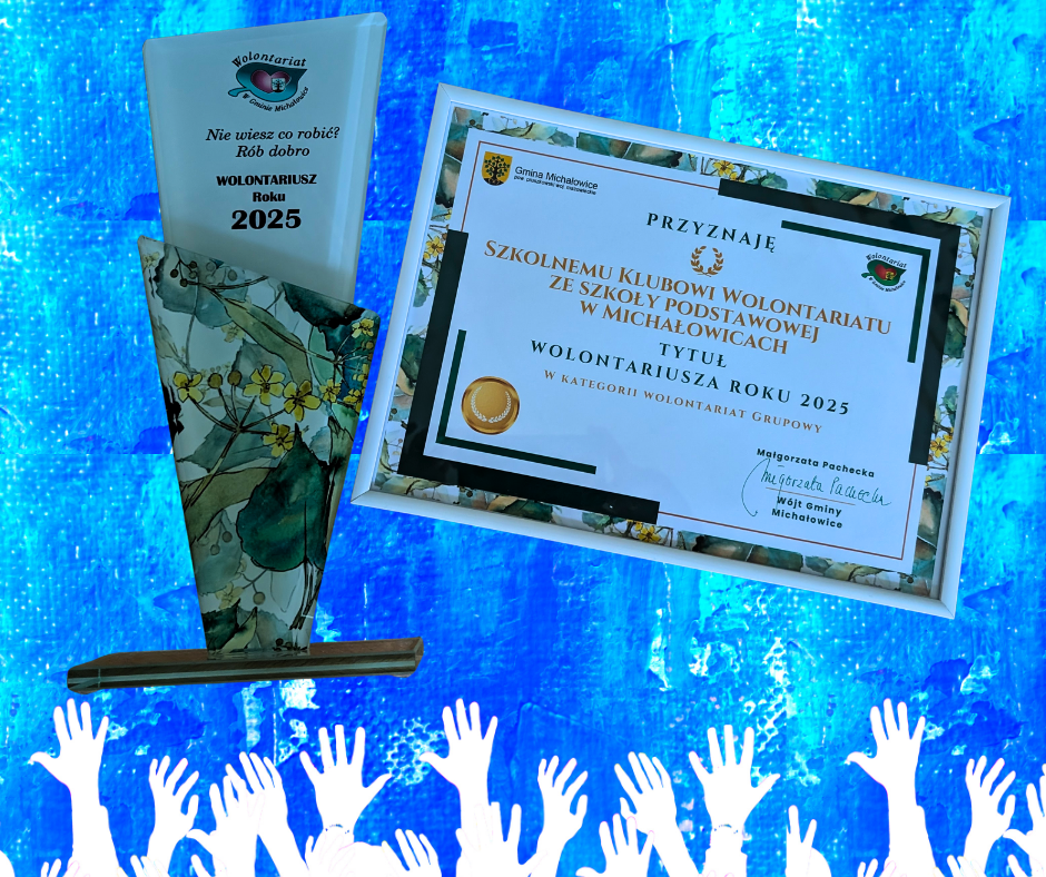 Z ogromną radością i dumą informujemy, że Szkolny Klub Wolontariatu znalazł się w gronie wyróżnionych tytułem „Wolontariusza Roku 2025”. Tytuł został przyznany przez Gminę Michałowice oraz Gminny Ośrodek Pomocy Społecznej w Michałowicach podczas uroczystej gali.