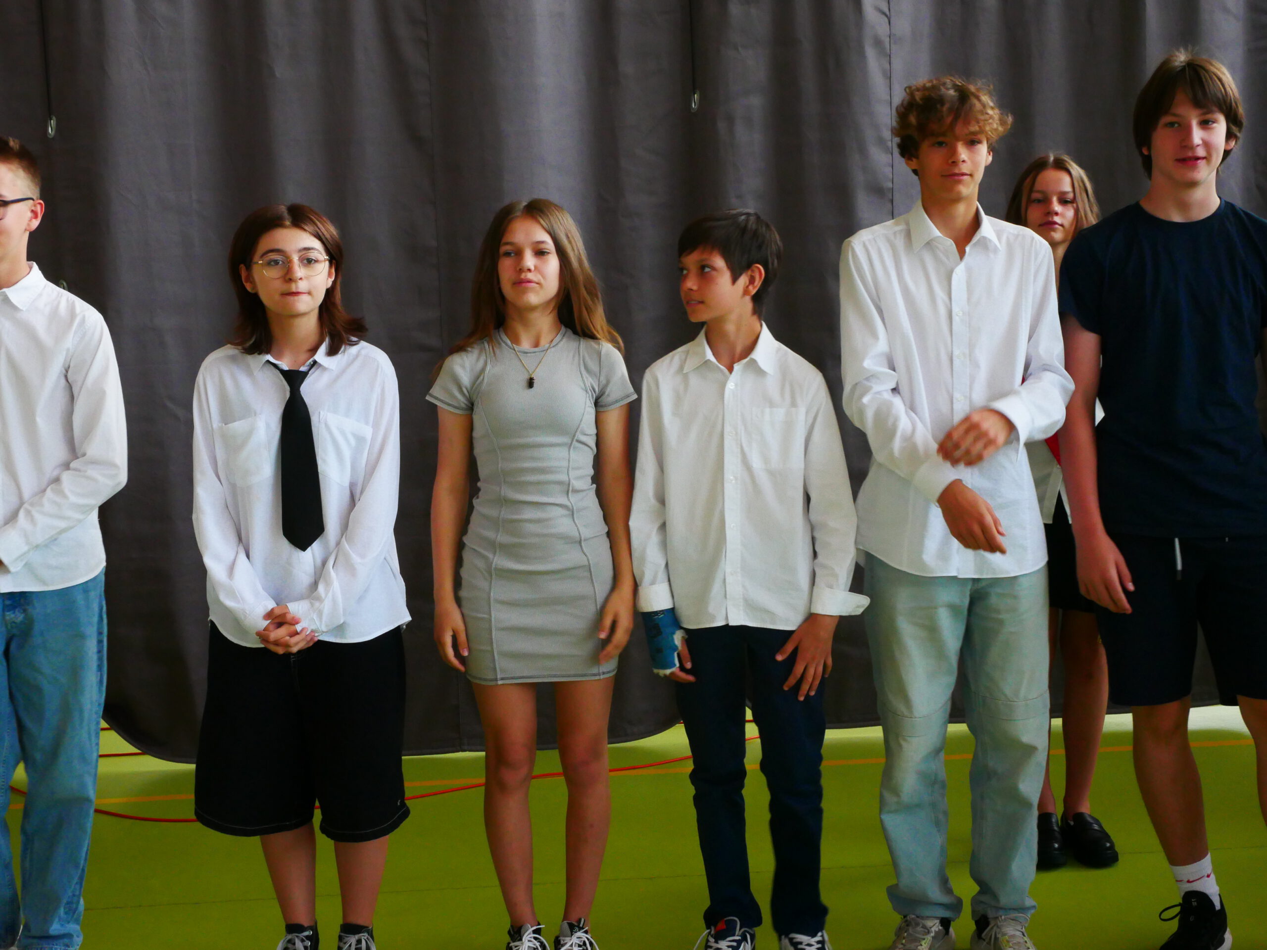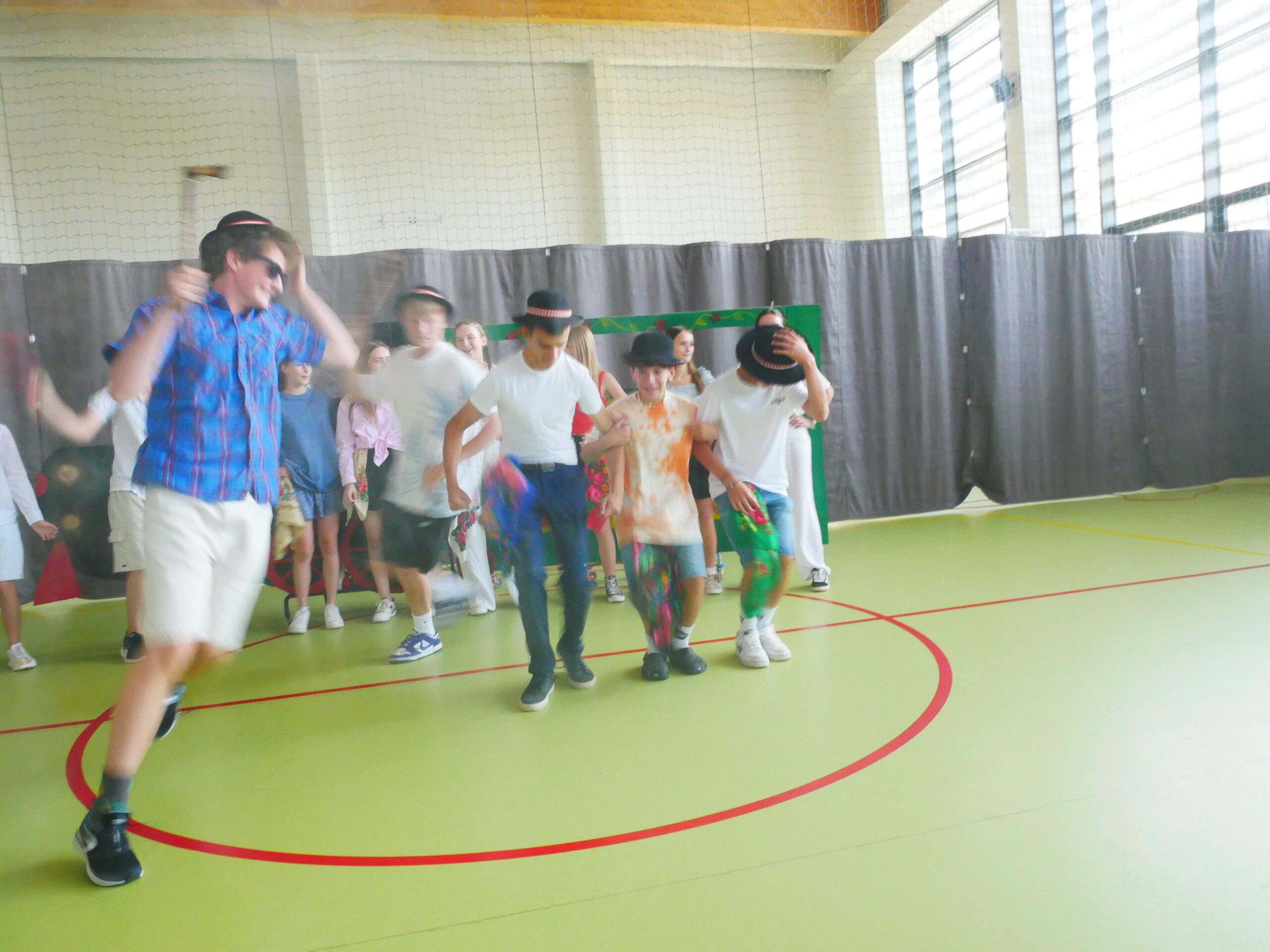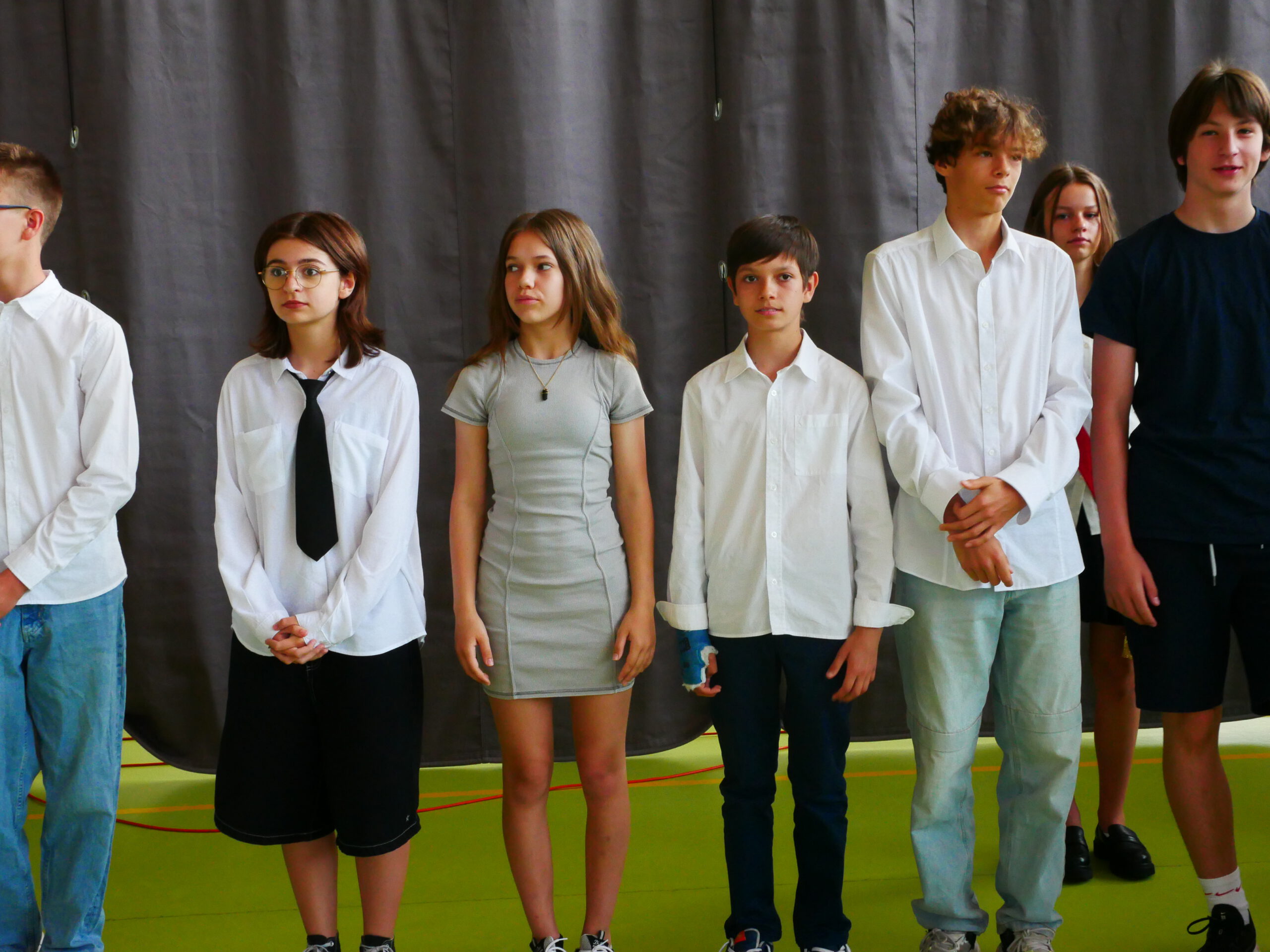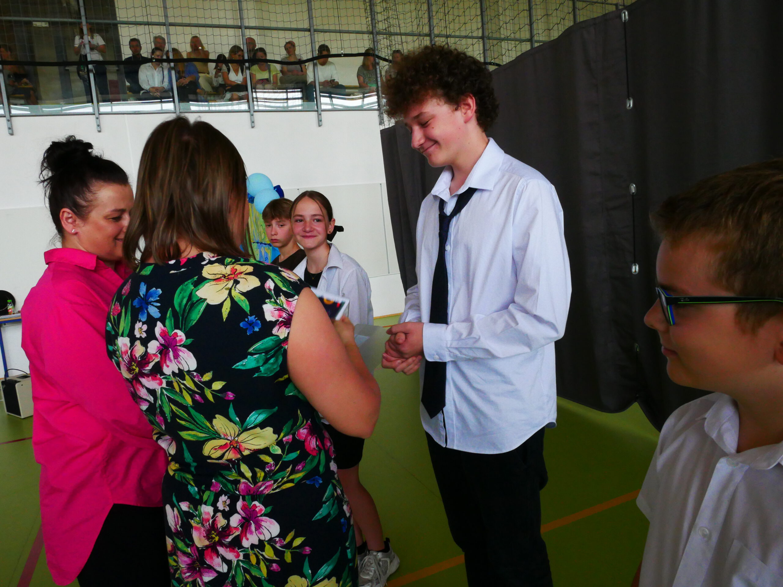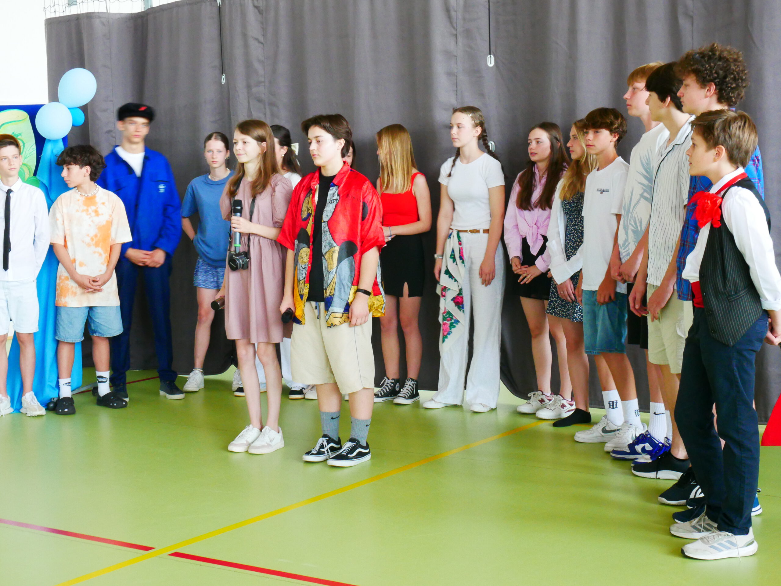 W dniu 21.06.2024 zakończył się rok szkolny. Uczniowie klas 7 razem z młodszymi koleżankami i kolegami przygotowali przedstawienie, w którym pociąg za jeden uśmiech odwiedzał różne miejscowości turystyczne. Uroczystość uświetnił występ chóru szkolnego.